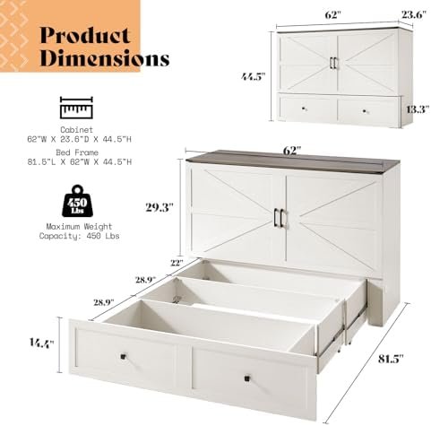 This piece blends farmhouse-inspired design with everyday practicality, giving your tiny home a bed that disappears when not in use and storage that always works hard.