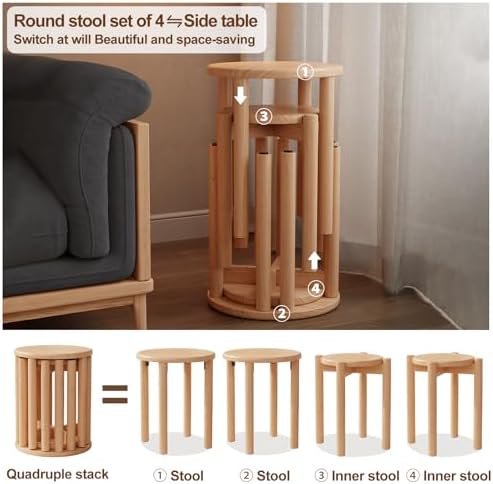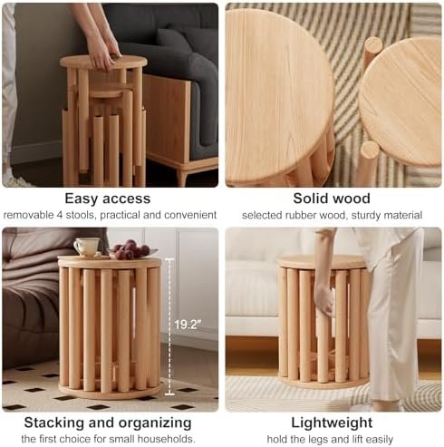 In a tiny home, every piece of furniture must serve multiple purposes. Chairs take up space, side tables clutter the floor, and nightstands may not even fit. These Stackable Wooden Stools solve these challenges with a design that adapts to every need.